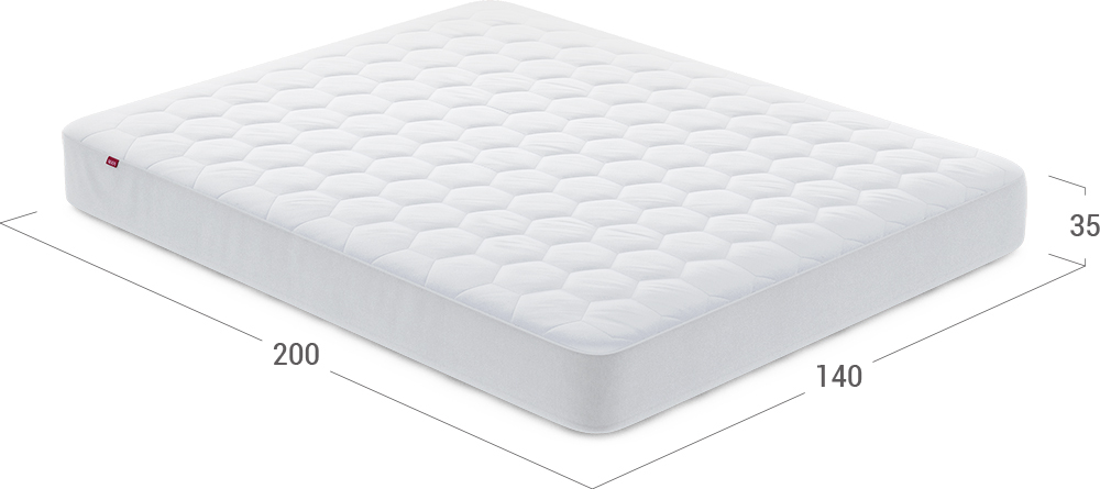 Верх чехла выполнен из прочного поликоттона с нежной сатиновой поверхностью и простеган на тонком слое воздушного волокна для дополнительной мягкости. Влагонепроницаемая пористая мембрана с внутренней стороны оберегает поверхность от проникновения жидкости и загрязнений, не нарушая естественную циркуляцию воздуха на спальном месте.