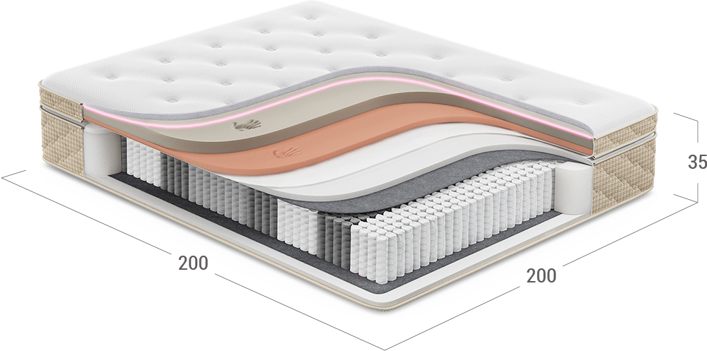 Обеспечивает упругую поддержку тела, воздействуя как множество микропружин, снимает лишнюю нагрузку с мышц и помогает расслабиться.