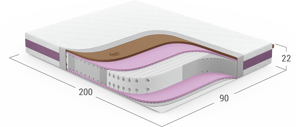 В этом матрасе для основы используется пенный материал PROFILEFOAM. Качество поддержки спины беспружинных матрасов зависит от эластичности пен. Чем выше эластичность, тем лучше поддержка спины.