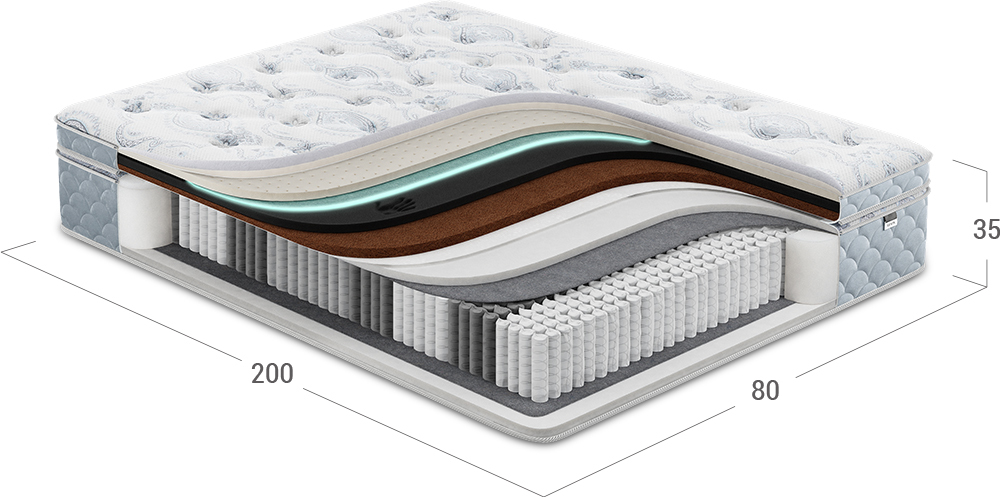 Обеспечивает упругую поддержку тела, воздействуя как множество микропружин, снимает лишнюю нагрузку с мышц и помогает расслабиться.