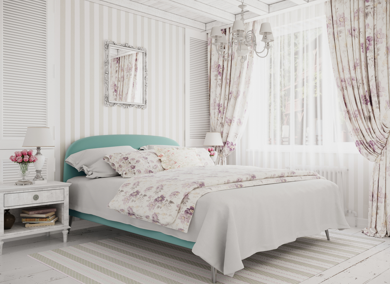 Создать гармоничный интерьер и завершить образ спальни помогут дополнительные аксессуары, например: тумбы, банкетки, подушки.