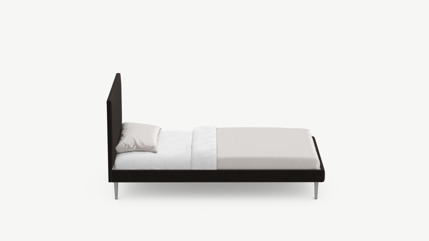 Кровать MOON FAMILY 1256 демонстрирует безупречный баланс изящных пропорций. Лаконичное изголовье, узкие царги и высокие опоры создают эффектный образ, привносящий в пространство спальни стильный и яркий акцент.