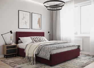 Фактура обивочного материала подбирается дизайнерами с учетом технологических и стилевых особенностей кровати.