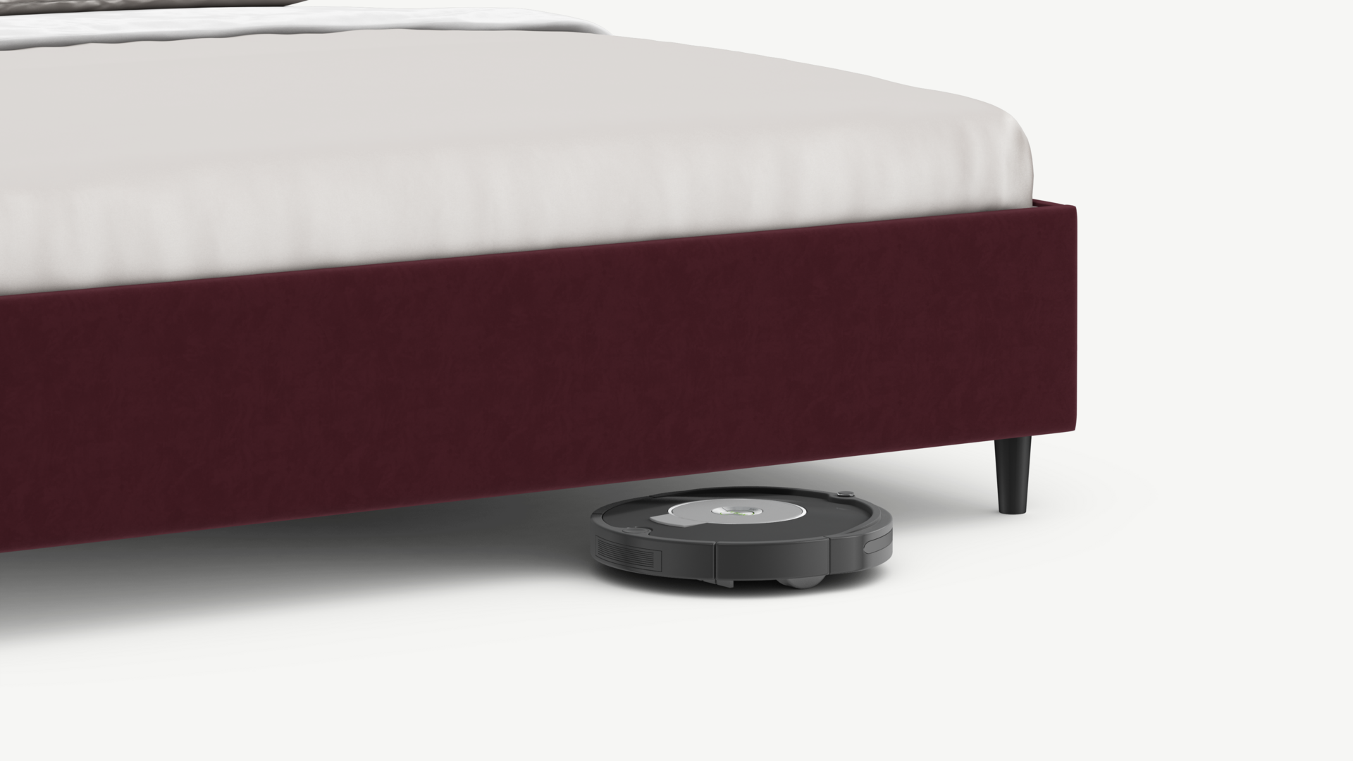Благодаря высоким опорам под кроватью проходит робот-пылесос и легко проводится влажная уборка, что обеспечивает чистоту и порядок в доме.