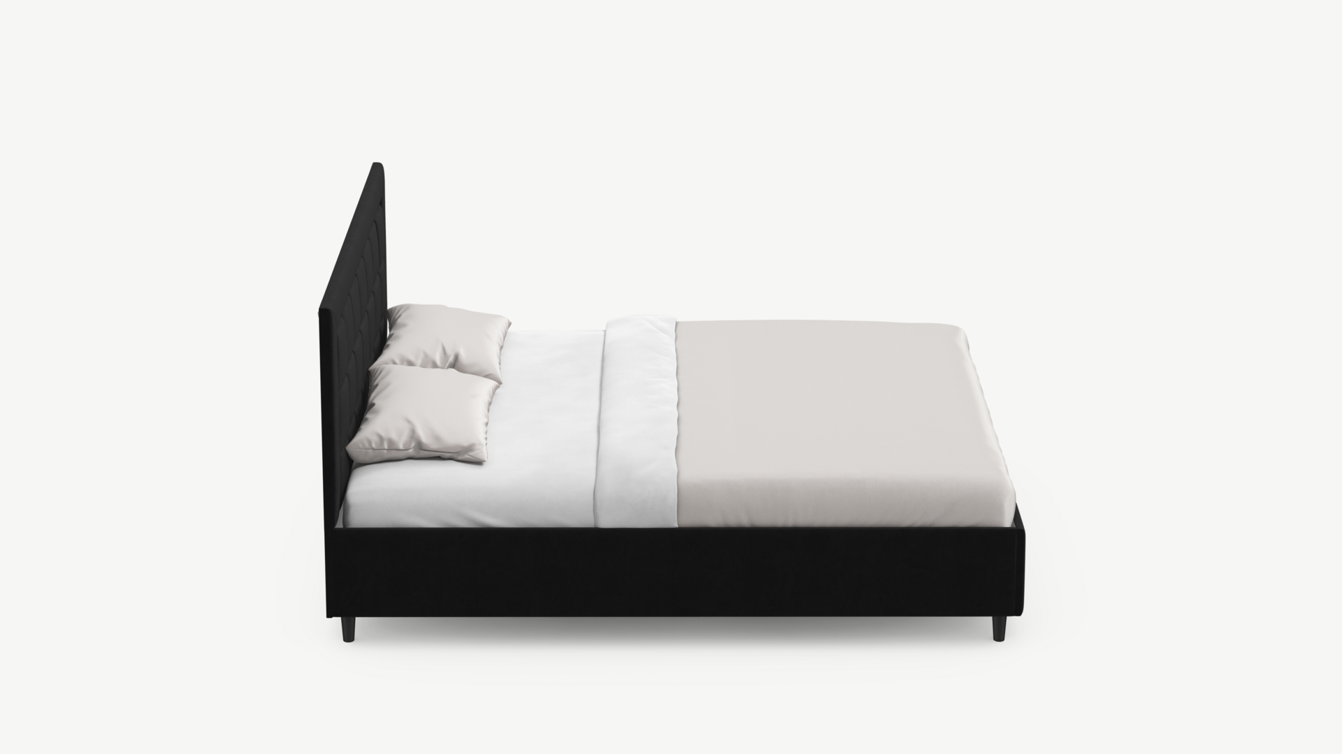 Стежка помещена в центр изголовья и обрамлена, словно картина. Объемные царги завершают цельную фигуру кровати и становятся гармоничным дополнением ее образа.