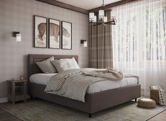 Фактура обивочного материала подбирается дизайнерами с учетом технологических и стилевых особенностей кровати.